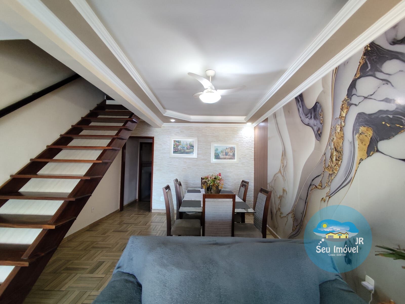 Com 240,00 metros quadrados de área externa e 258,00 metros quadrados de área construída o imóvel é composto por: