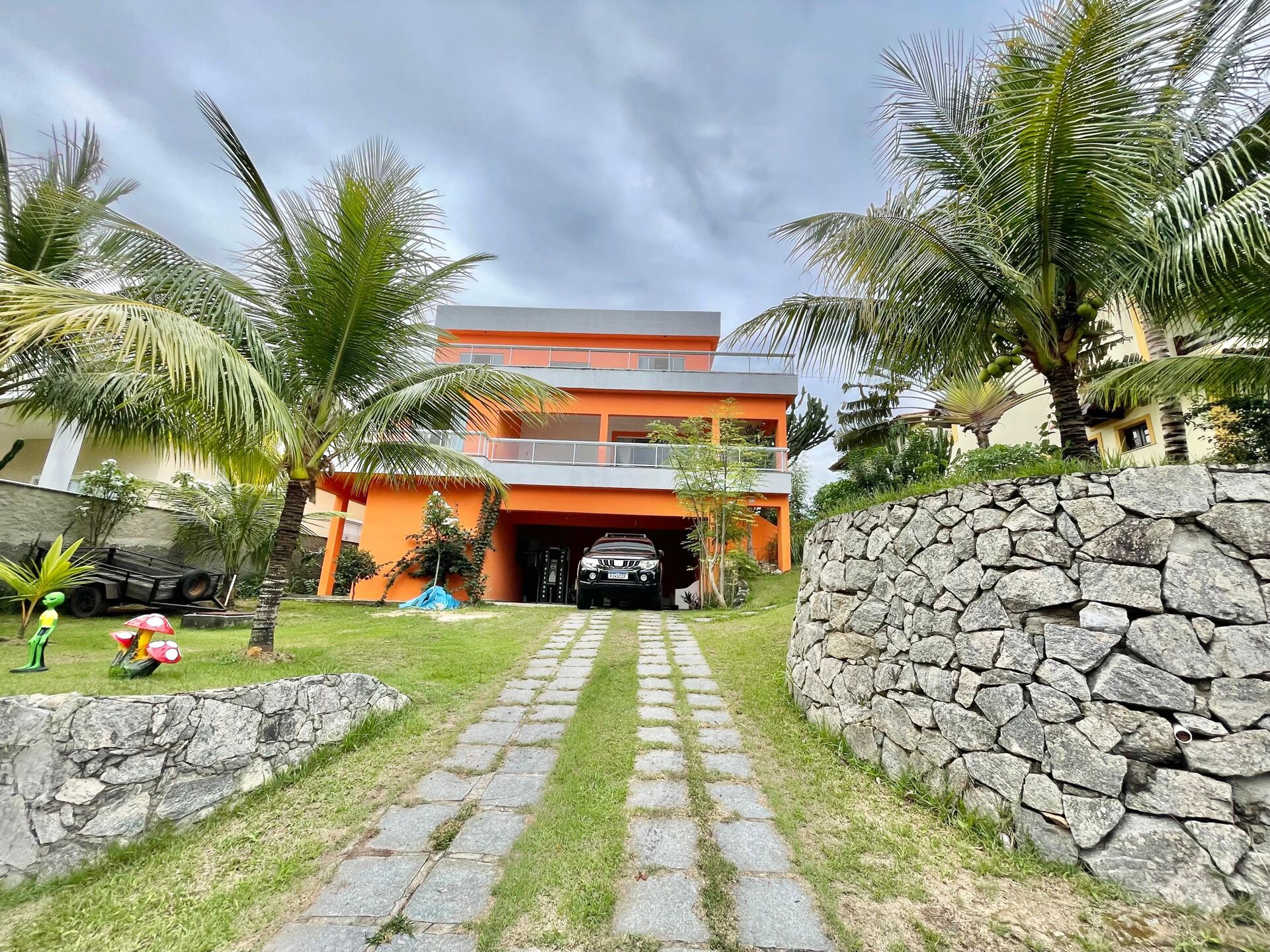 À noite é possível adormecer apreciando o céu estrelado da cama do quarto do 3°. piso e acordar com a vista do mar e da copa verde das árvores, simplesmente deslumbrante!!! A casa é do estilo inglês, vista de frente (telhado embutido no terceiro piso), com portas, janelas e guarda-corpo em blindex e do estilo colonial, vista dos fundos (telhados a vista, com portas e janelas em madeira). Condomínio tem segurança 24 horas, circuito de monitoramento por câmeras e ronda de vigiais motociclistas à noite, quadra poliesportiva, saunas seca e a vapor, churrasqueira. Tem praia "particular" nos fundos do Condominio, espaco marina. O Condominio é acessado por rua exclusiva, que inicia na Rodovia Amaral Peixoto e fica a 200 metros. Aceito PERMUTAR por sitio ou fazenda de alto padrão, com nascente, lago, pomar, RGI, internet, sinal celular, boa topografia, com bom acesso e próximo de asfalto, área livre para cultivo e benfeitorias. Composição da casa: 1º PISO: - garagem coberta (corpo da casa) para 2 carros– terreno com espaço livre para uns 10 carros ou construção de benfeitorias - lavanderia com porta exclusiva externa (com bancada com pia dupla, prateleiras em granito, box com chuveiro, box com vaso sanitário, box para máquinas de lavar e secar) - área de serviço externa no corpo da sacada com tanque duplo - cozinha americana na área de serviço interna - 01 quarto com porta independente (ideal para empregado) 2º PISO: - 01 varandão coberto (acesso principal ao salão) - 01 sacadão coberto em forma de "L". - 01 salão em forma de "L", todo em porcelanato de 60x60cm, com 02 portas frontais de correr em blindex - 01 quarto com closet (espaço) - 01 banheiro social com blindex - cozinha - varanda parcialmente coberta com telhado nos fundos (colado à cozinha). 3º PISO: - 02 quartos, sendo 01 quarto com porta de correr em blindex, com acesso ao varandão e outro quarto com janela de correr em blindex para varandão - hall - 01 banheiro social com box de blindex - 01 varandão descoberto em forma de "L" BENFEITORIAS: Piscina iGUI, cisterna de 15 mil litros, 2 caixas de água de 1.000 litros cada, casa de hóspede duplex (01 cômodo no térreo e uma suite com pequena cozinha americana no 2º andar, nos fundos do terreno (s/ acabamentos), ideal para caseiro ou hóspede. POMAR nos fundos: Graviola, romã, pitaya polpa roxa e branca, fruta do conde, acerola, amora, pitanga, goiaba, tangerina, limão siciliano, maracujá, figo, laranja lima, laranja japonesa, mamão, abacaxi, bananeiras nanica, prata, ouro e d'água, cana, louro, jabuticaba, seriguela, jaca manteiga, manga, abacateiro, caju, coqueiros da bahia e oliveira. Terreno grande com muita área livre nos fundos, lateral e frente. - jardim com variedades de plantas ornamentais.
